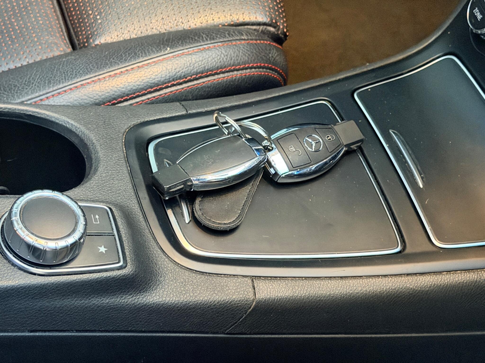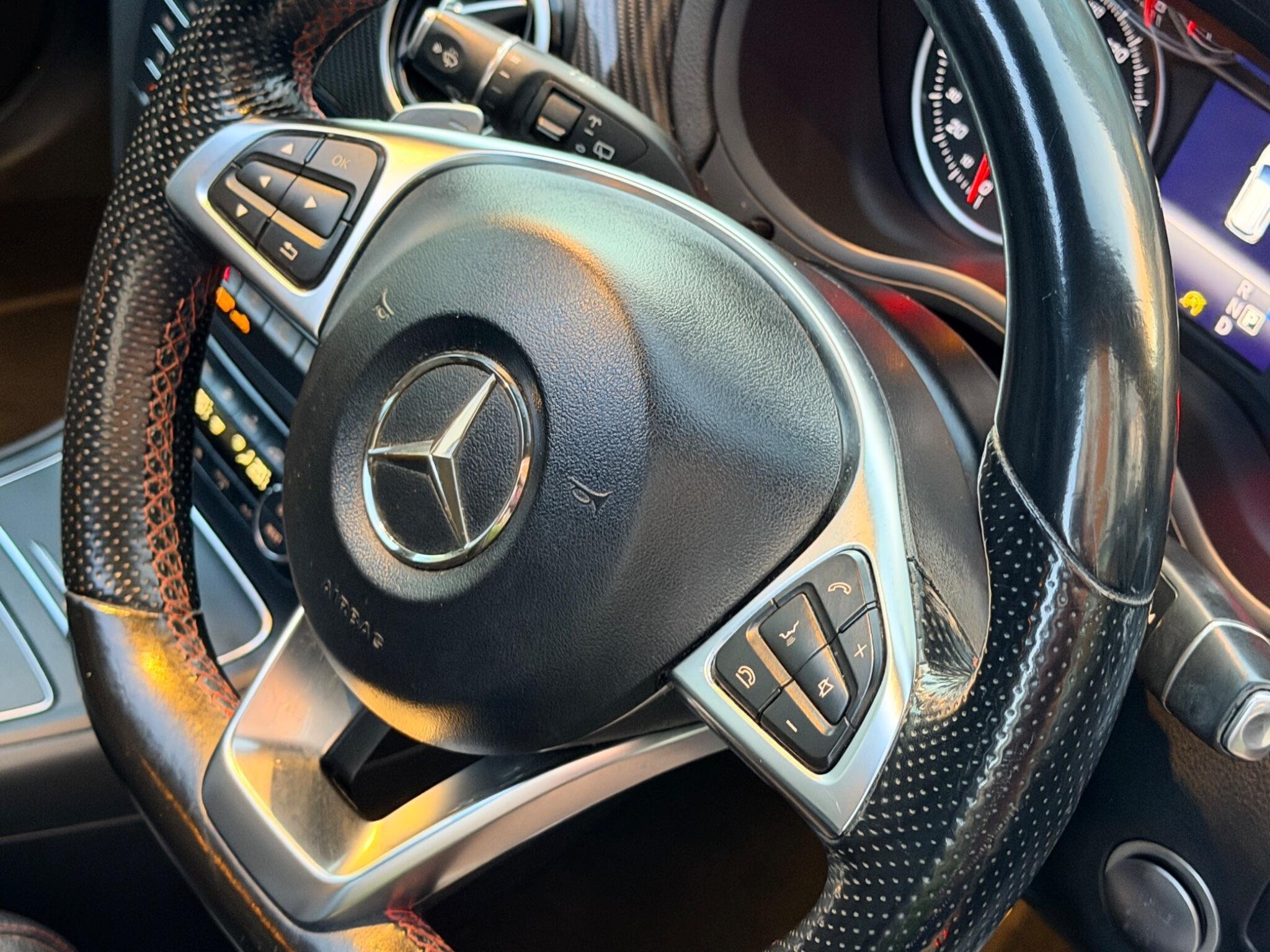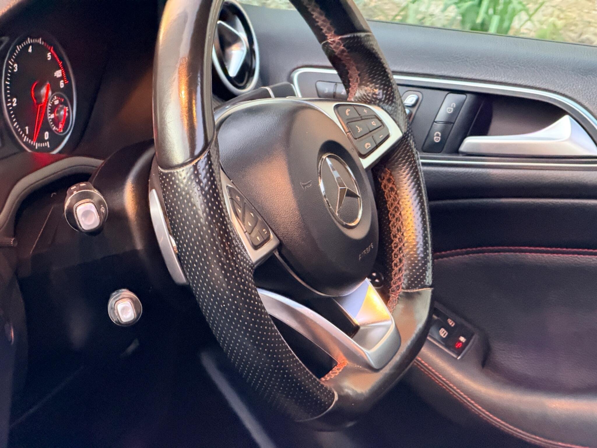 - Steering Wheel - 3-Spoke Leather - 12-Button Multi-Function with Flattened Lower Section and Perforated Grip Area and Red Contrast Stitching